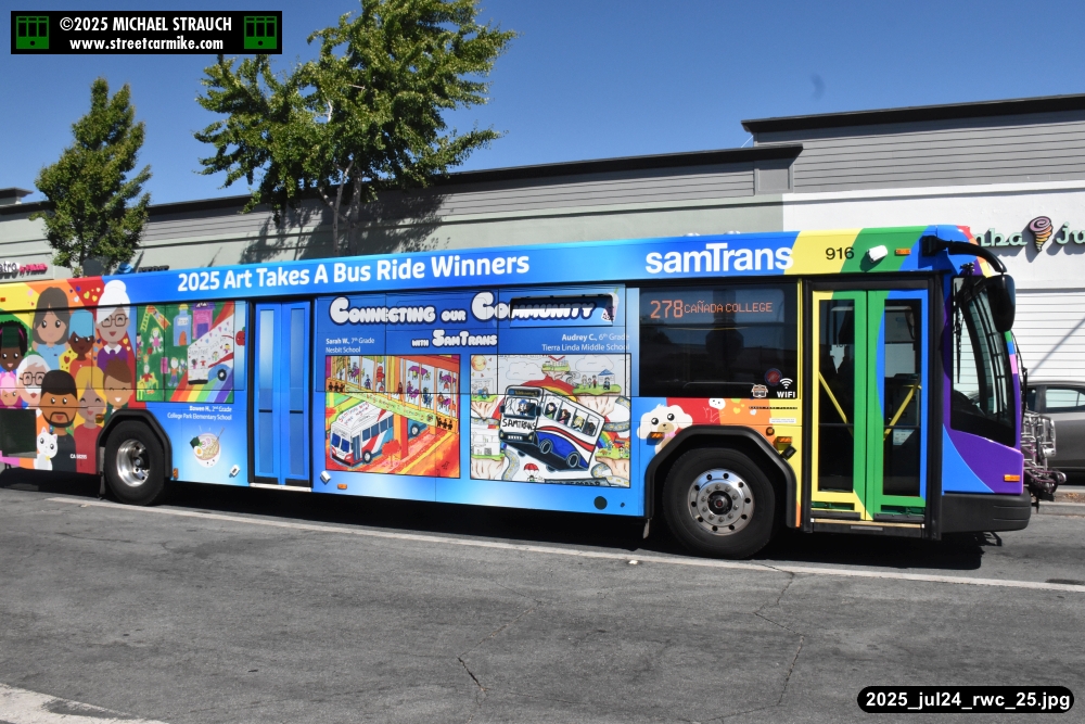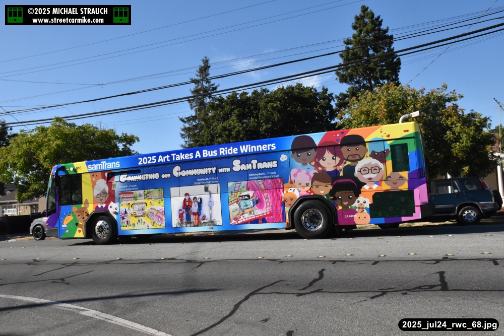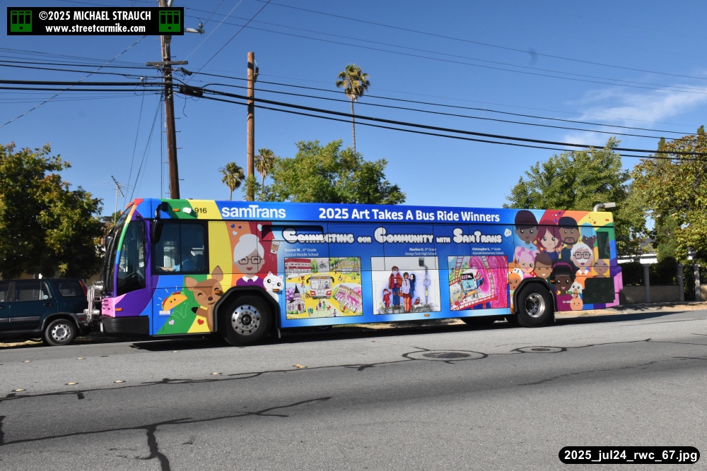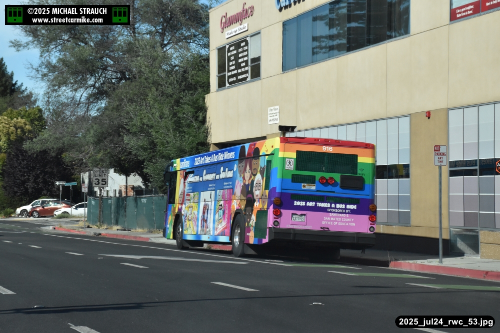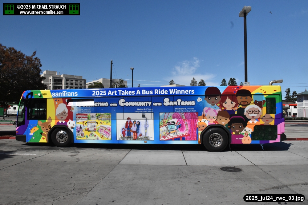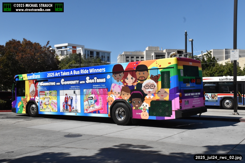 When I arrived early, I discovered SamTrans Gillig 916, the 2025 Art Takes A Bus Ride coach, featuring