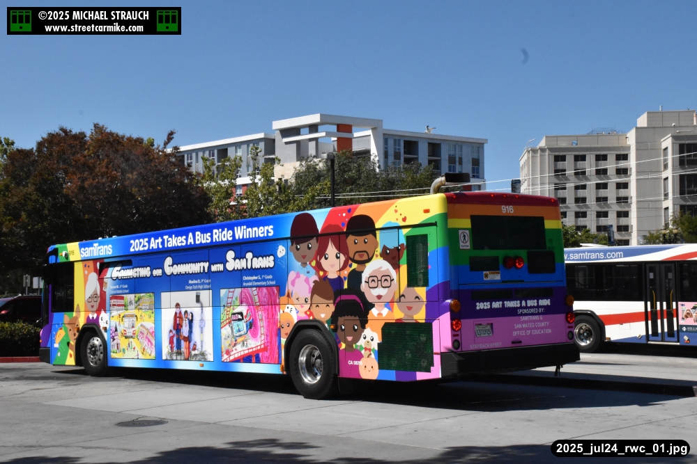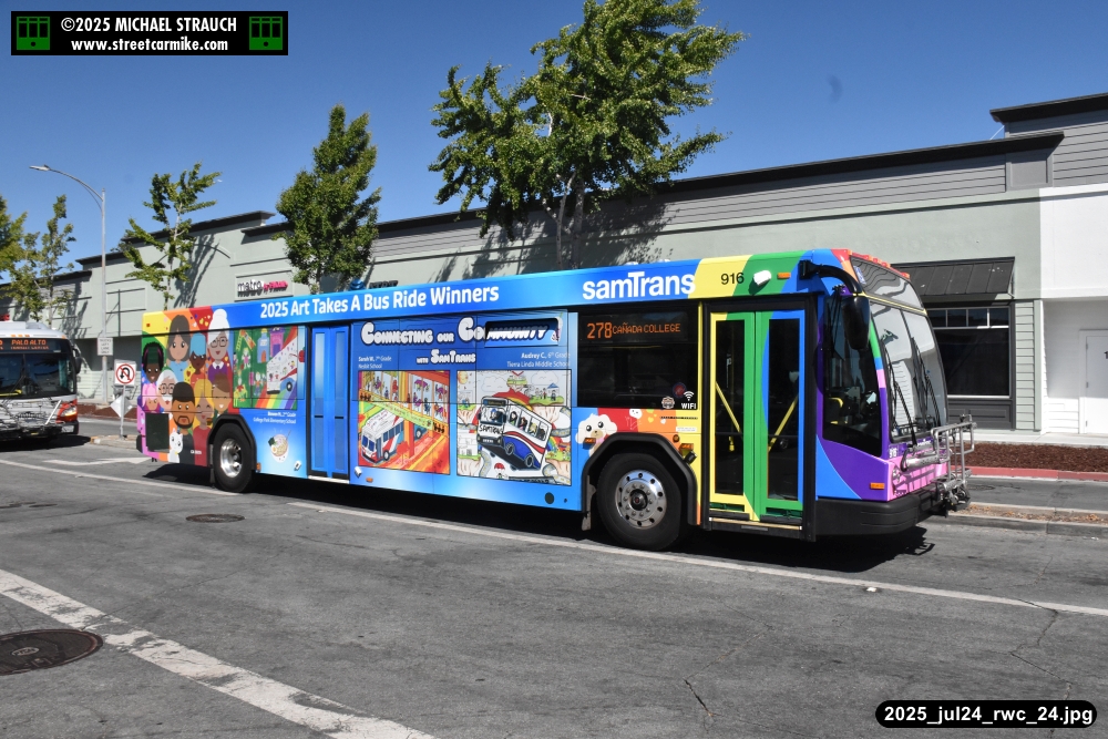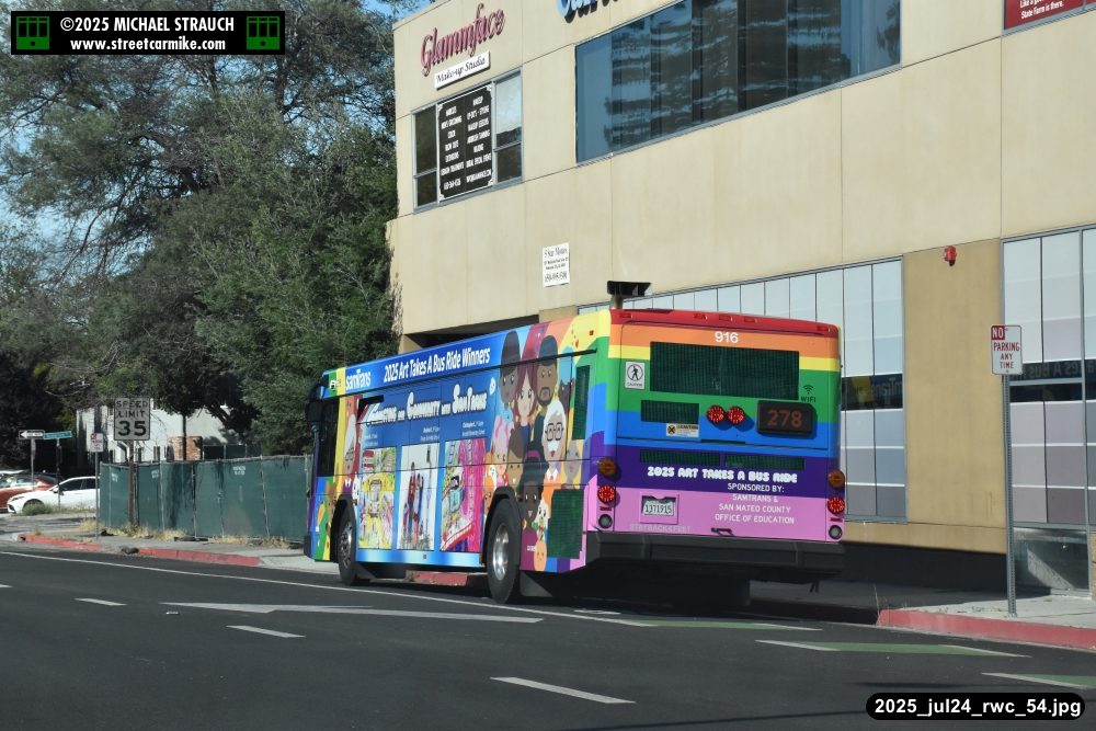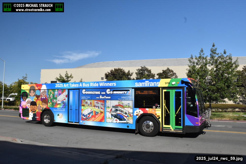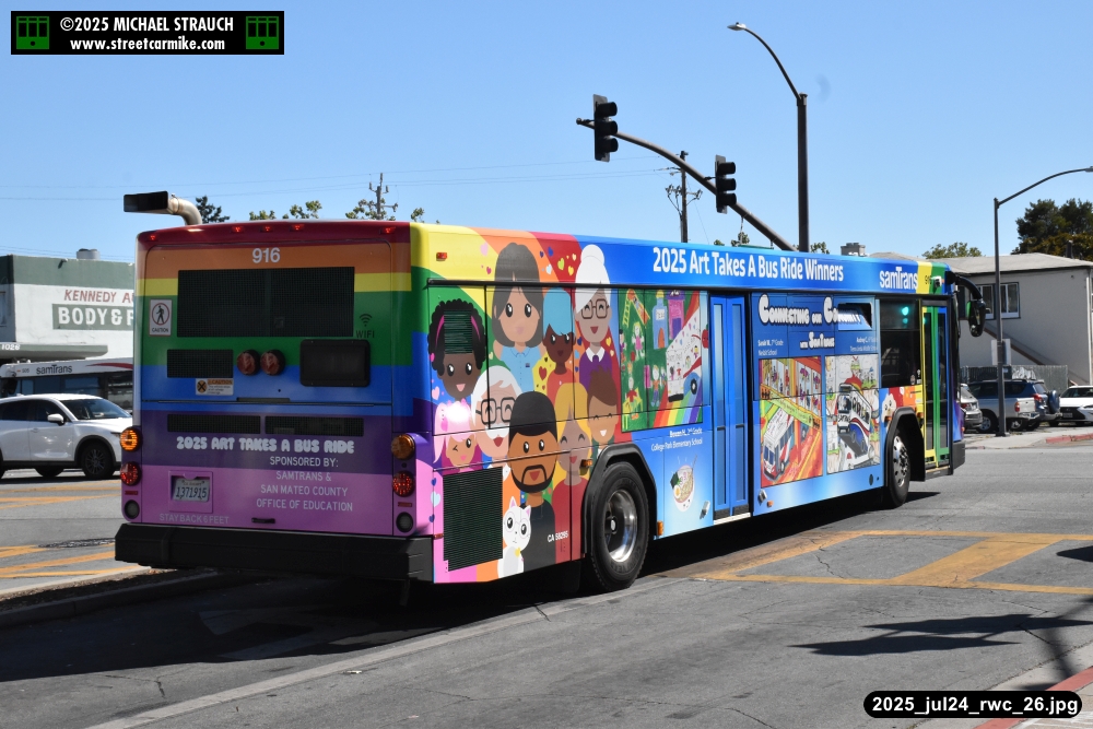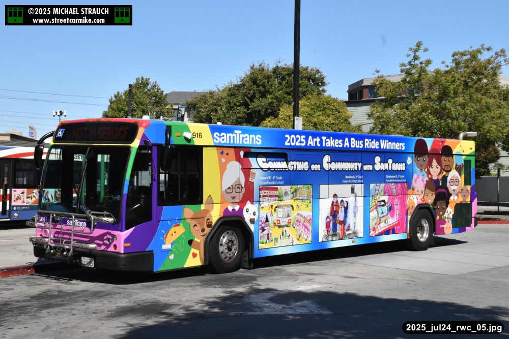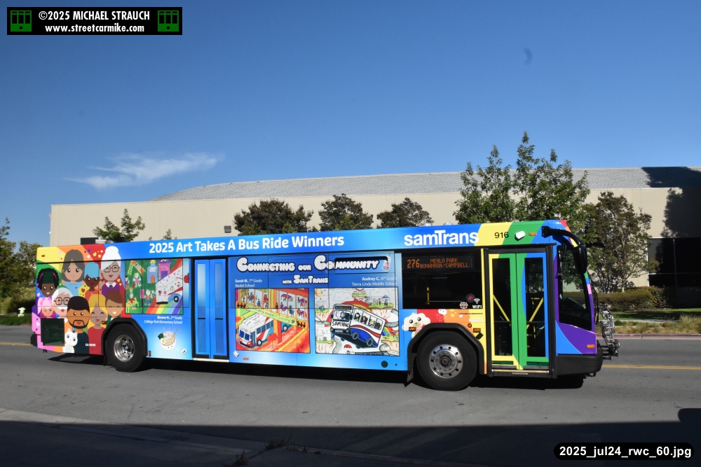 When I arrived early, I discovered SamTrans Gillig 916, the 2025 Art Takes A Bus Ride coach, featuring