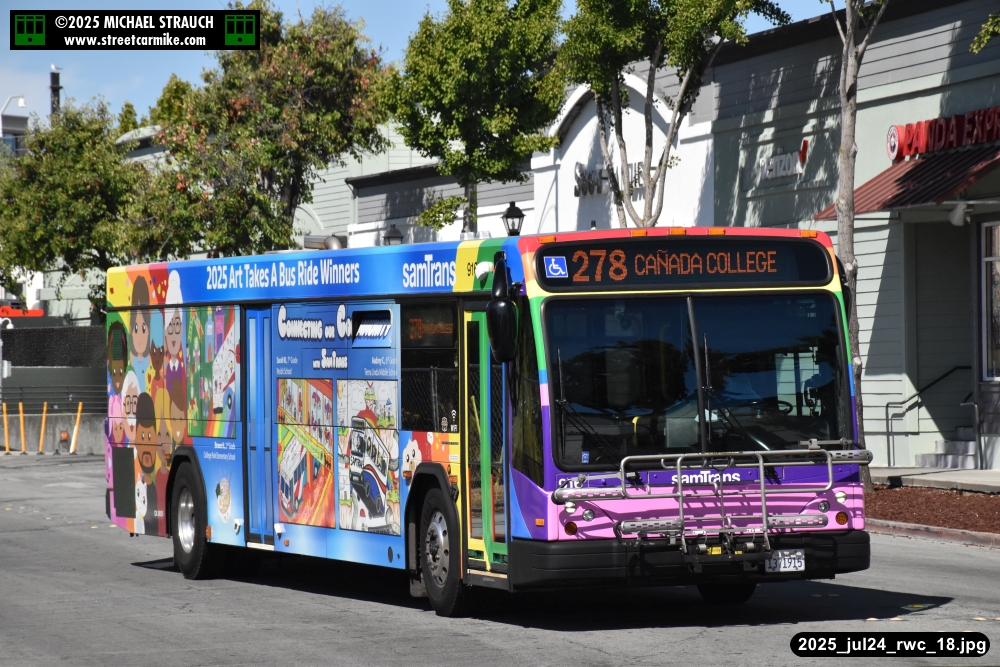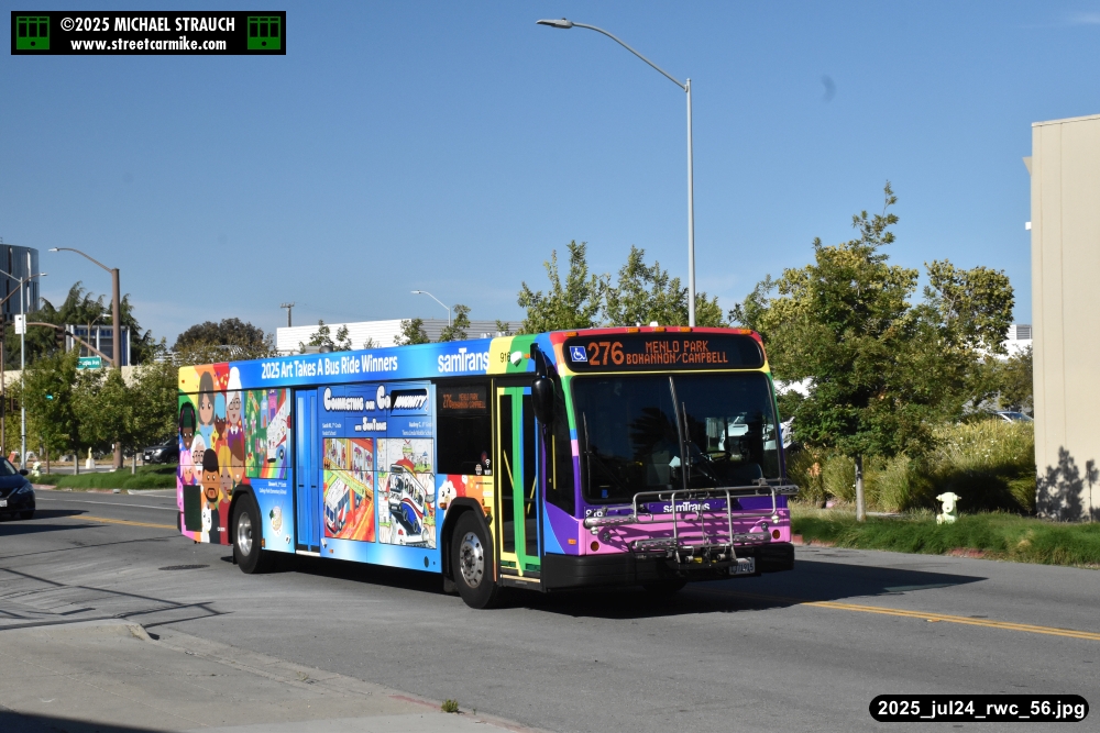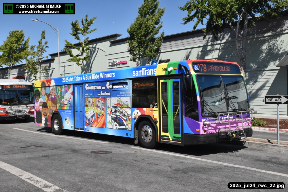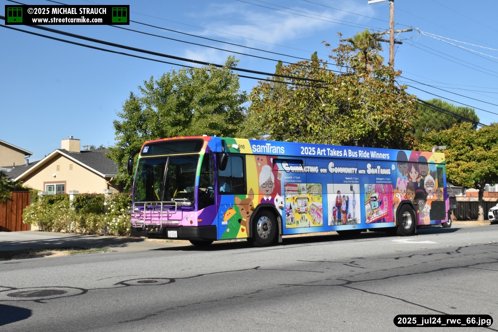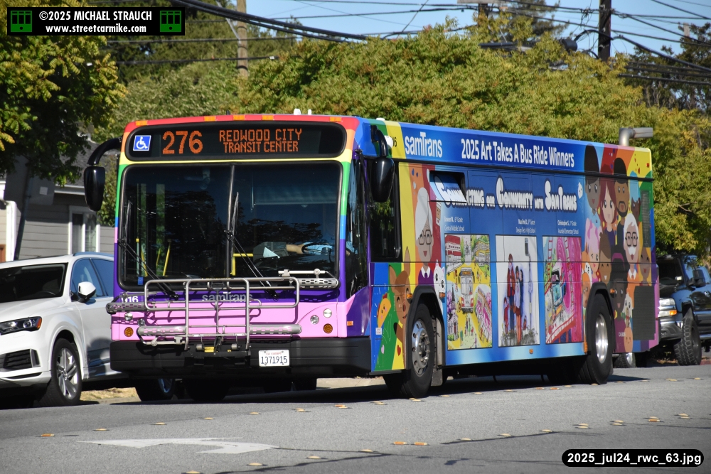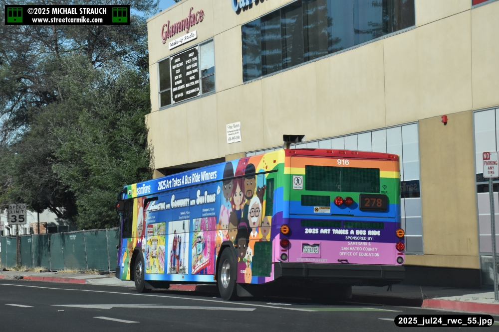When I arrived early, I discovered SamTrans Gillig 916, the 2025 Art Takes A Bus Ride coach, featuring