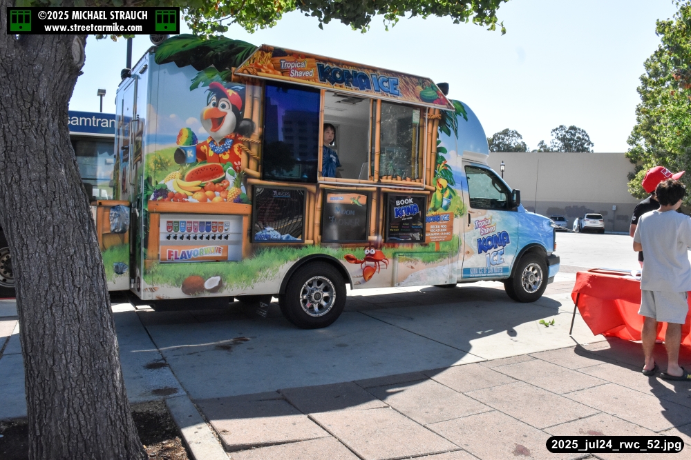Caltrain offered free treats from Kona Ice flavored shaved ice at the Redwood City station.