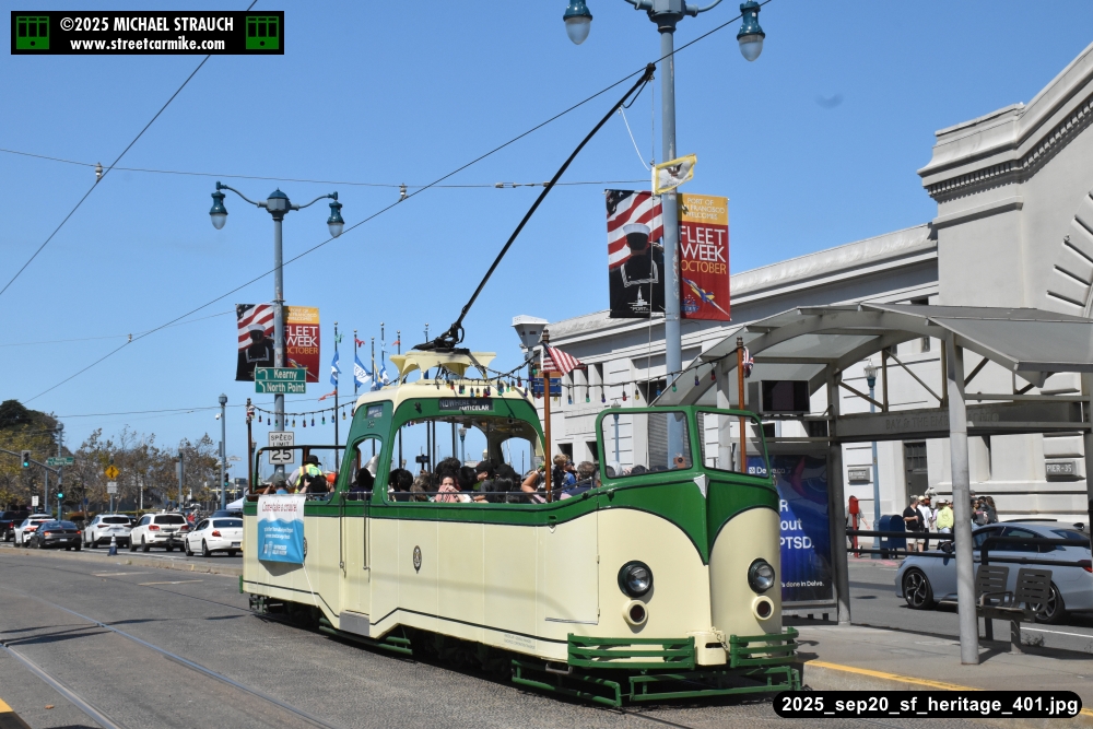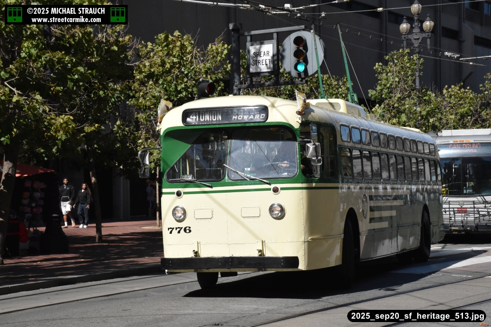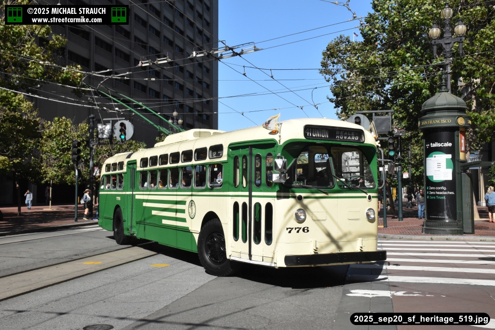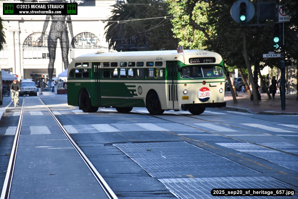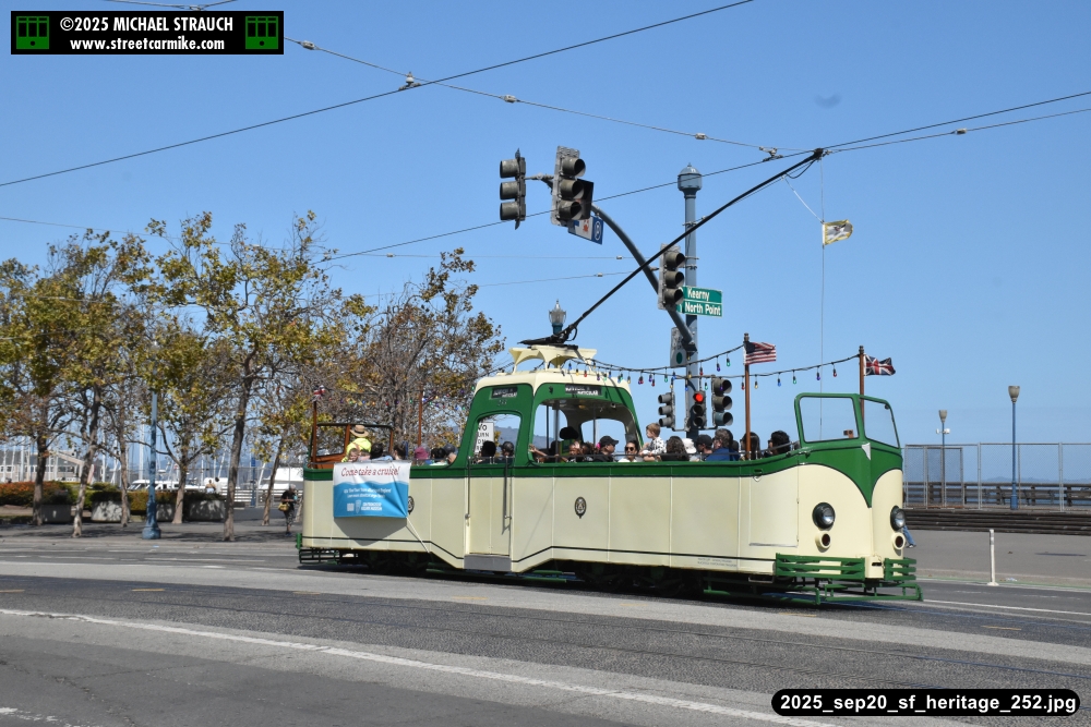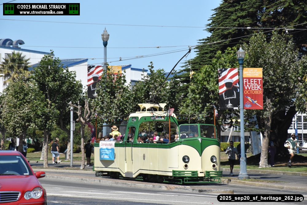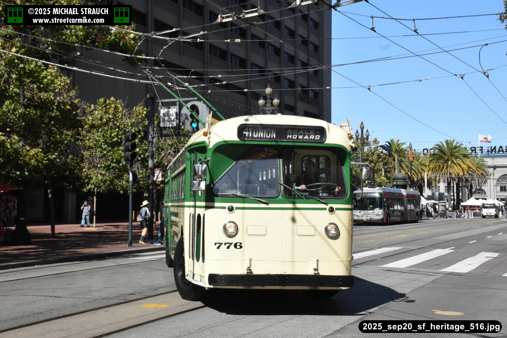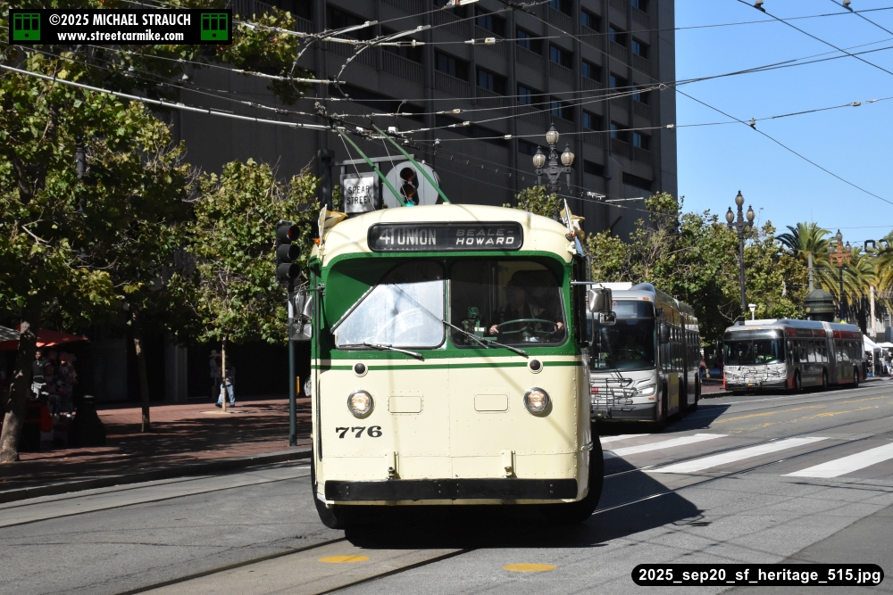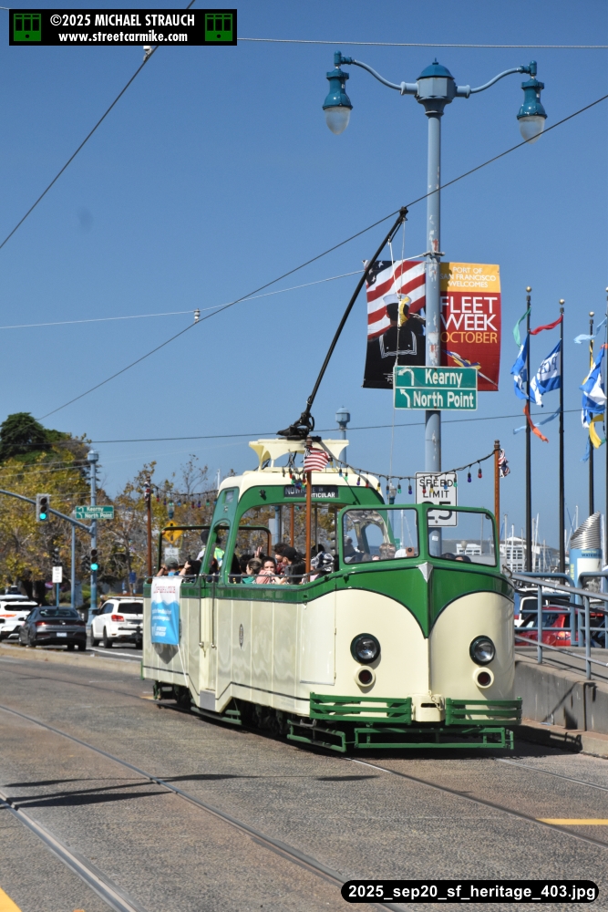 to Pier 39 and back. On the trolley coach side, Marmon 776 and Flyer 5300 were looping out Columbus Ave.
