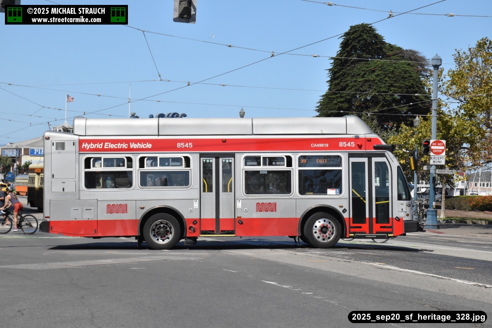 and North Point St. to Van Ness Ave. And there were motor coaches on a loop to Caltrain: White 042, Orion 9010,