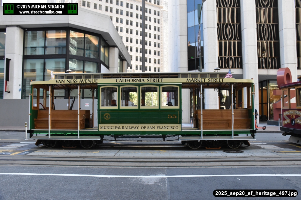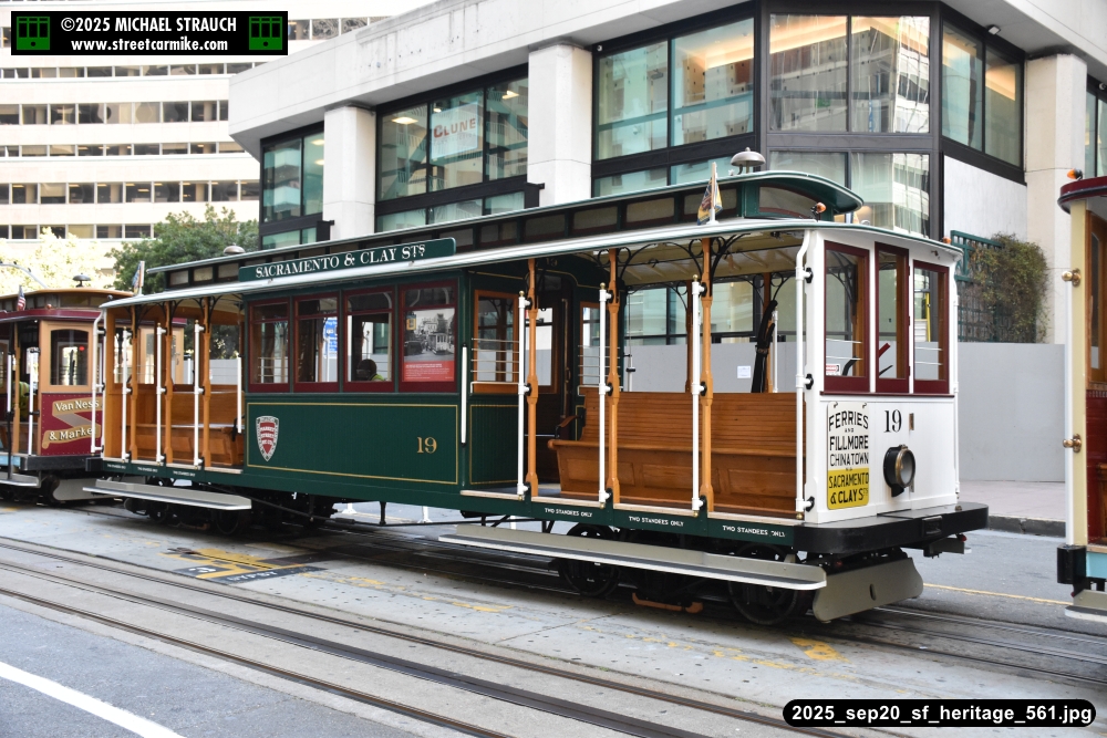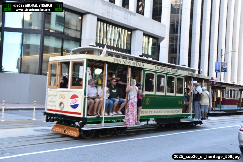 Street, Big 19 and newly restored 55 in Muni 1950s livery were in service.