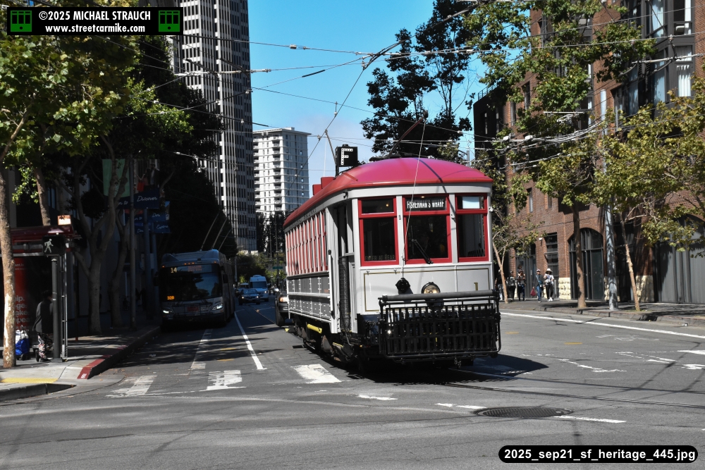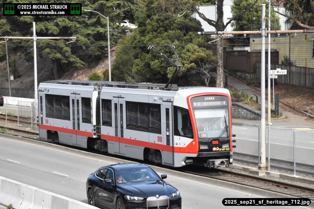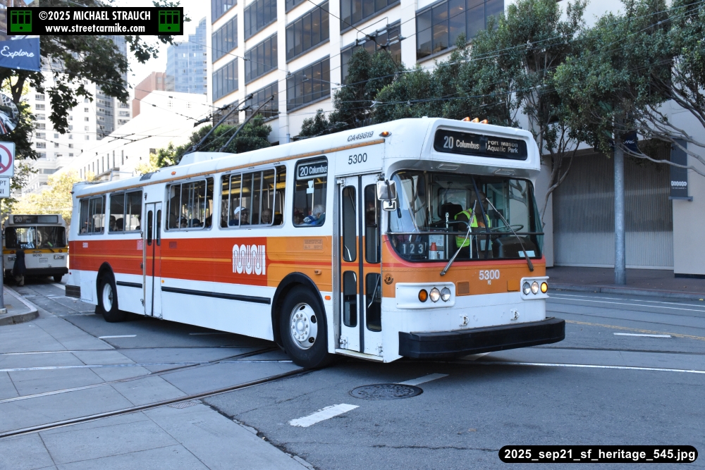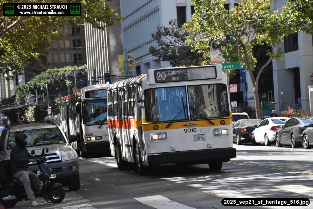 Two rides, on Twin 0163 on the Caltrain route and on Orion 9010 on the Columbus Ave. and North Point
