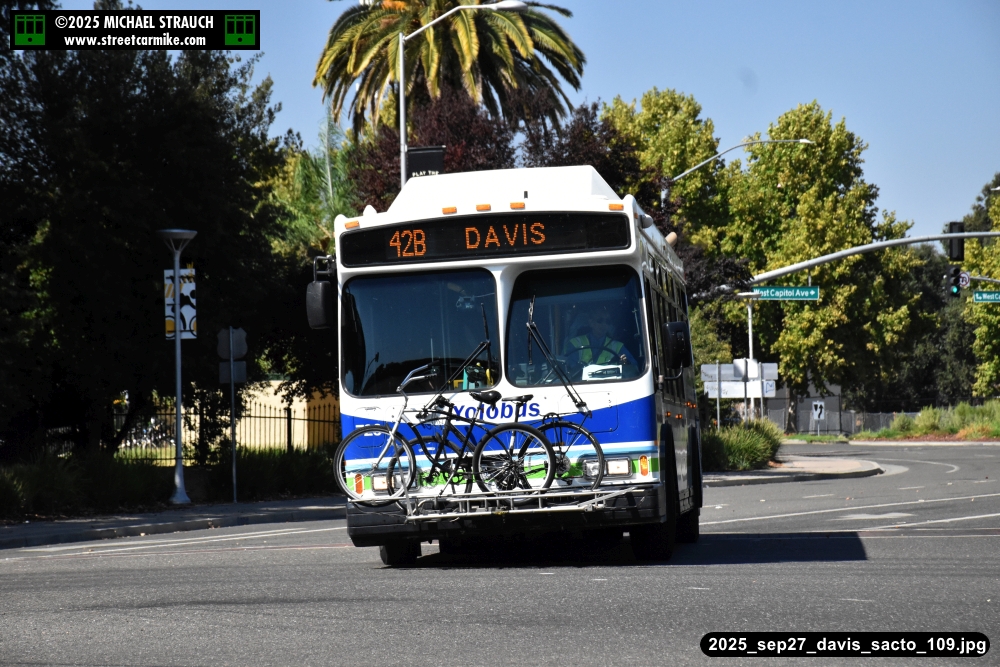 Orion 731 on the 240 West Sacramento Shuttle westbound is approachiing W. Capitol Ave. and Jefferson Blvd. on August 19, 2025. Eight photos added 10/13/25.